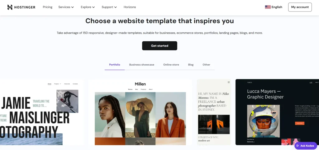 - Variety of Templates: Hostinger offers a wide selection of templates suitable for different niches, including business, portfolio, blog, and eCommerce sites. The templates are designed to be modern and visually appealing.