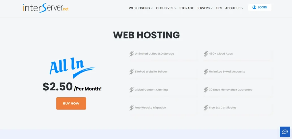 One of the main attractions of InterServer is its affordable pricing. Shared hosting starts at just $2.50 per month, and even after renewal, the price stays the same thanks to their Price Lock Guarantee. This makes it a great option for those on a budget who want reliable hosting without surprises down the line.
