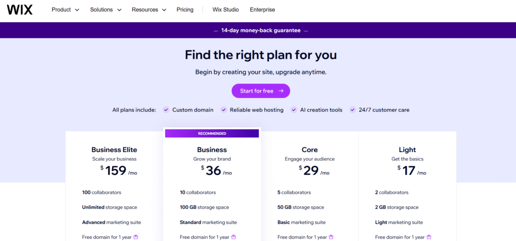 - Scalable Pricing: Wix offers a variety of plans, from free to premium, so you can choose the one that fits your needs and budget.
