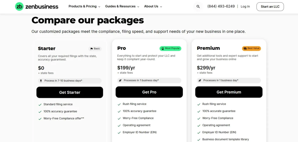 One of the main advantages of ZenBusiness is its pricing structure. ZenBusiness offers three main plans: